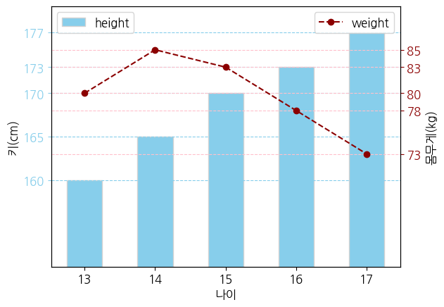 ax2 = ax1.twinx(): x축을 공유하는 새로운 객체를 만든다.