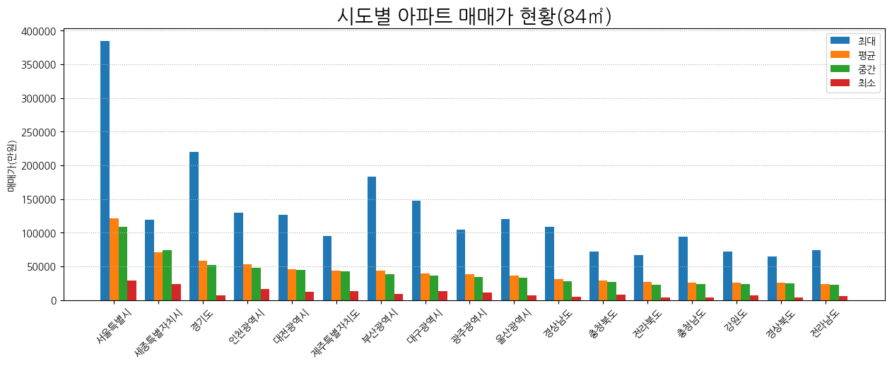 plt.title('시도별 아파트 매매가 현황(84㎡)', size = 20)