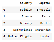 'Capital': ['Brussels', 'Paris', 'Berlin', 'Amsterdam', 'London']}