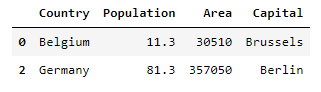 df[df['Country'].isin(['France', 'Ger', 'America', 'Belgium'])]