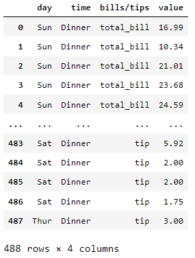#id는 day와 time, value는 total_bill과 tip으로 하는 데이터프레임