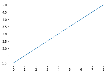 plt.plot(x, y, linestyle = 'dashed'); #linestype = '--'와 동일