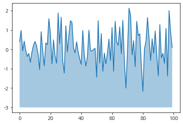 fill_between은 선 아래의 영역을 채워주는 옵션입니다.