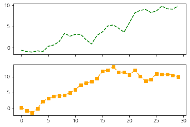 plt.subplot(row, column, index, sharex = 기준 subplot)