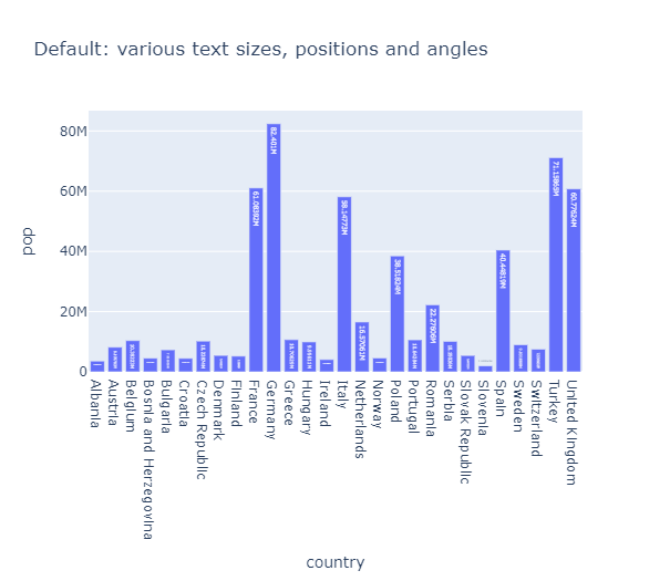 fig = px.bar(df, y='pop', x='country', text_auto = True,