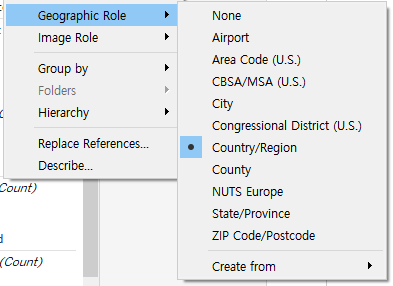 ✅ Geographic Roles: Airport, Area Code, CBSA/MSA, City, Congressional District, Country/Region, Country, NUTS Europe, State/Province, Zip code/Postcode