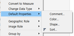 ✅ dimension의 default properties: comment, color, shape, sort