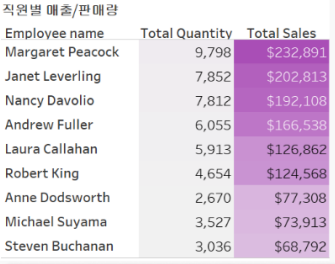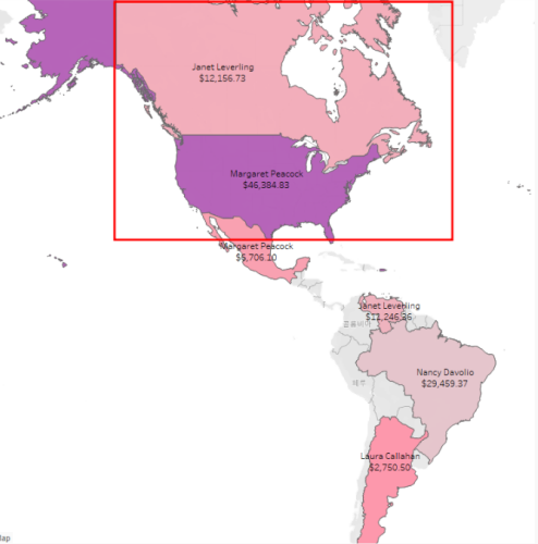 동일한 지역 내에서의 각 직원들의 성과를 비교했을 때, 역시 Margaret Peacock이 가장 좋은 성과를 내고 있는 지역들이 꽤 많았다.